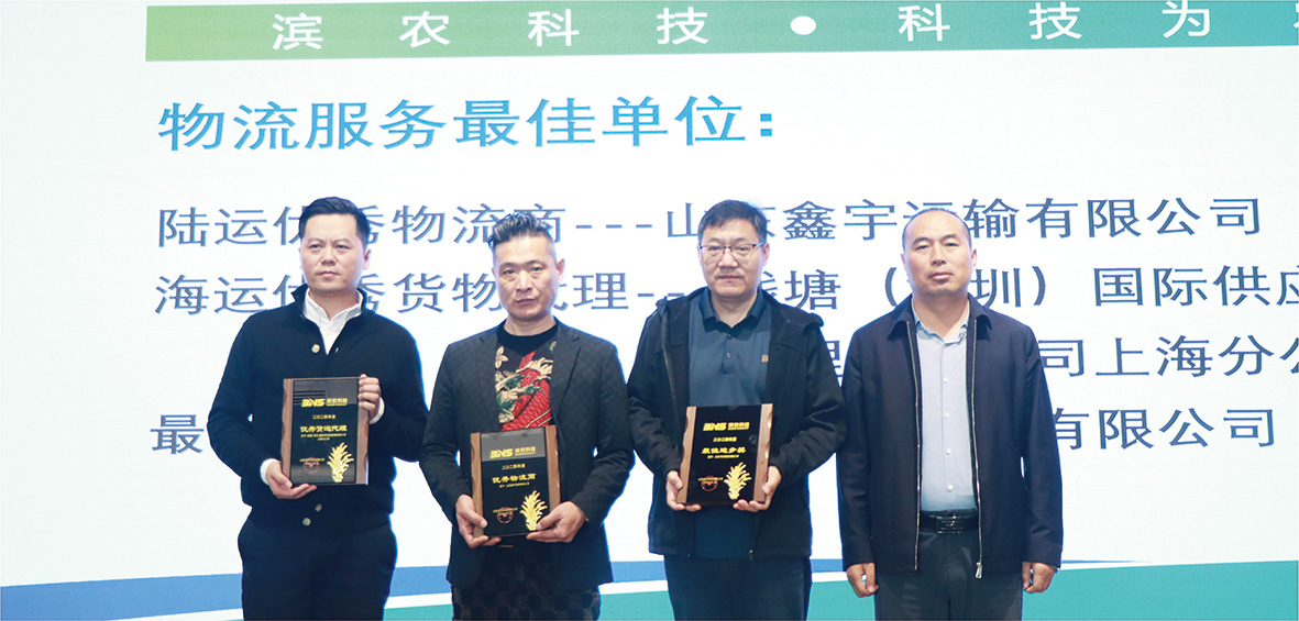 會上,物流部主任謝云東誠摯歡迎承運商參會,并感謝長期以來對公司的支持。物流部主管詳細匯總并分析了陸運運輸過程中出現(xiàn)的各類問題,并提出了相應的解決方案,同時對下一步運輸提出了更高要求。海運訂艙專員介紹了對海運工作具體情況,對比分析了出口數(shù)據(jù),對各合作貨運代理進行了評價并提出了針對性要求。謝主任從濱農(nóng)的生產(chǎn)經(jīng)營情況、物流主要工作、存在的問題及改進措施、下一步工作計劃等四個方面進行了全面解讀,圍繞運輸效率提升、成本控制、服務質(zhì)量優(yōu)化等多個方面提出了具體要求,為后續(xù)合作明確了方向;此外,依據(jù)承運商年度合作評價標準對所有物流商進行了評分展示,最終,山東鑫宇運輸有限公司榮獲“陸運優(yōu)秀物流商”,錢塘(深圳)國際供應鏈管理有限公司上海分公司榮獲“海運優(yōu)秀貨物代理”,山東華業(yè)物流有限公司獲評“最佳進步物流商”。業(yè)務跟單服務部經(jīng)理張倩結(jié)合當前國際形勢對出口業(yè)務的影響,對貨運代理提出了專業(yè)詳細要求,以確保貨物安全高效出運。最后,副總經(jīng)理郭安勇深刻剖析了宏觀經(jīng)濟形勢及行業(yè)競爭態(tài)勢,結(jié)合濱農(nóng)“雙百目標”,與承運商展望合作前景,明確責任與義務,共同追求服務質(zhì)量的提升。