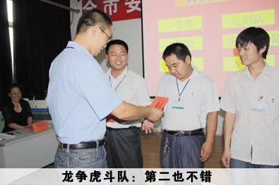 比賽設(shè)有必答題、搶答題、風(fēng)險(xiǎn)題三個(gè)環(huán)節(jié),還為現(xiàn)場(chǎng)觀(guān)眾特設(shè)了觀(guān)眾題。副總經(jīng)理陳延剛擔(dān)任總裁判。比賽內(nèi)容涵蓋企業(yè)文化、安全環(huán)保、規(guī)章制度等各個(gè)方面,內(nèi)容豐富,涵蓋面廣,重點(diǎn)突出,出題方式靈活多樣。各隊(duì)選手們準(zhǔn)備充分,精神飽滿(mǎn),競(jìng)賽過(guò)程拼搶激烈,高潮迭起,觀(guān)眾互動(dòng)搶答,精彩紛呈。經(jīng)過(guò)三輪激烈的角逐,科室一組亮劍隊(duì)以270分的絕對(duì)優(yōu)勢(shì)勇奪桂冠,一分廠(chǎng)龍爭(zhēng)虎斗隊(duì)和四分廠(chǎng)龍之隊(duì)分獲二、三名。陳總為各參賽隊(duì)現(xiàn)場(chǎng)頒獎(jiǎng),企業(yè)文化部主任戚哲芬為本次活動(dòng)組織做了總結(jié)點(diǎn)評(píng),并針對(duì)現(xiàn)場(chǎng)組織的諸多細(xì)節(jié)問(wèn)題提出要求。