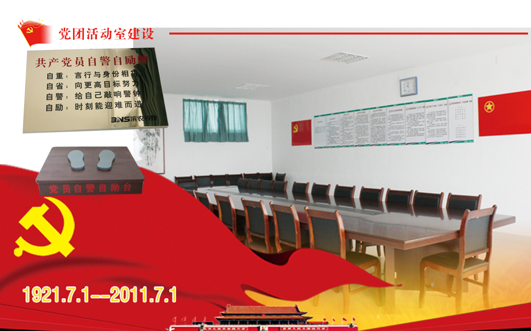 一種儀式是指黨總支召開黨組會時,與會黨員須立于自警自勵牌前,進行自重、自省、自警、自勵的反觀自照。6月2日,企業(yè)文化部已將黨團活動室布置一新,并設(shè)置了黨員自警自勵牌。