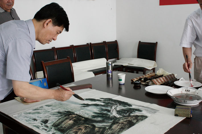 ◆山東省工商局副局長(zhǎng)李學(xué)法等嘉賓到我司即興潑墨
