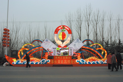 此次參展,我公司經(jīng)過精心準備,籌劃了一臺別具一格的元宵燈展。龍舟展燈主造型為雙手擎托綠色地球,寓意濱農(nóng)、國昌開拓農(nóng)化、建材兩大事業(yè)板塊及對農(nóng)業(yè)豐收和綠色建材事業(yè)的執(zhí)著追求。燈展期間,我公司組織了有獎競猜燈謎活動,與觀看燈展的市民展開有效互動,并即時贈送禮品, 廣大市民熱情參與,參與人數(shù)達4000余人。