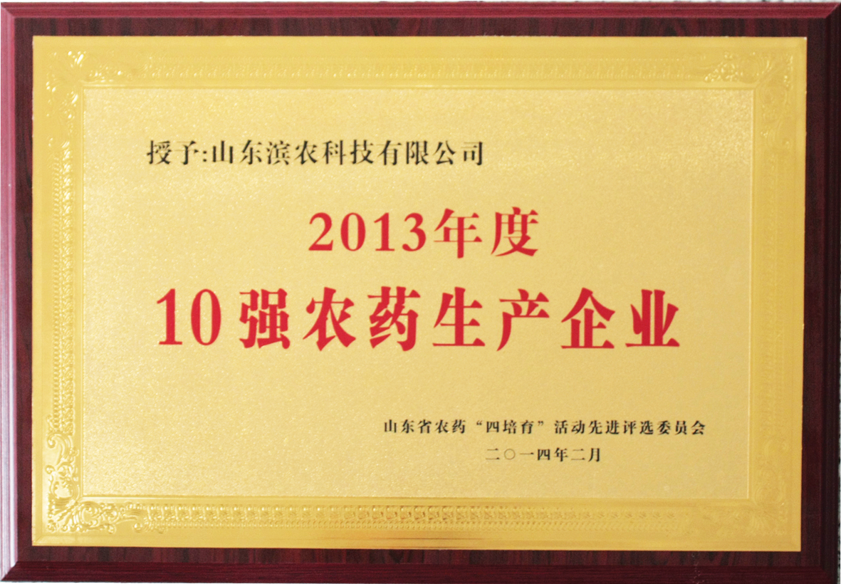 3月13日,山東省農(nóng)藥管理工作年會(huì)在濟(jì)南召開(kāi),公司董事長(zhǎng)黃延昌應(yīng)邀參會(huì)。會(huì)議公布了山東省農(nóng)業(yè)廳組織的“四培育”活動(dòng)先進(jìn)單位評(píng)選結(jié)果:濱農(nóng)科技獲得十強(qiáng)農(nóng)藥生產(chǎn)企業(yè)第一名。這是我公司繼2010年、2012年獲得第一名之后再次榮獲第一名。這一榮譽(yù)的取得,不僅證明了我公司在山東農(nóng)藥行業(yè)所具有的地位和實(shí)力,證明了公司產(chǎn)品在廣大用戶(hù)心中的美譽(yù)度,同時(shí)也將鼓勵(lì)我公司繼續(xù)腳踏實(shí)地,以更加優(yōu)秀的產(chǎn)品、更加優(yōu)異的服務(wù)來(lái)回報(bào)社會(huì)。