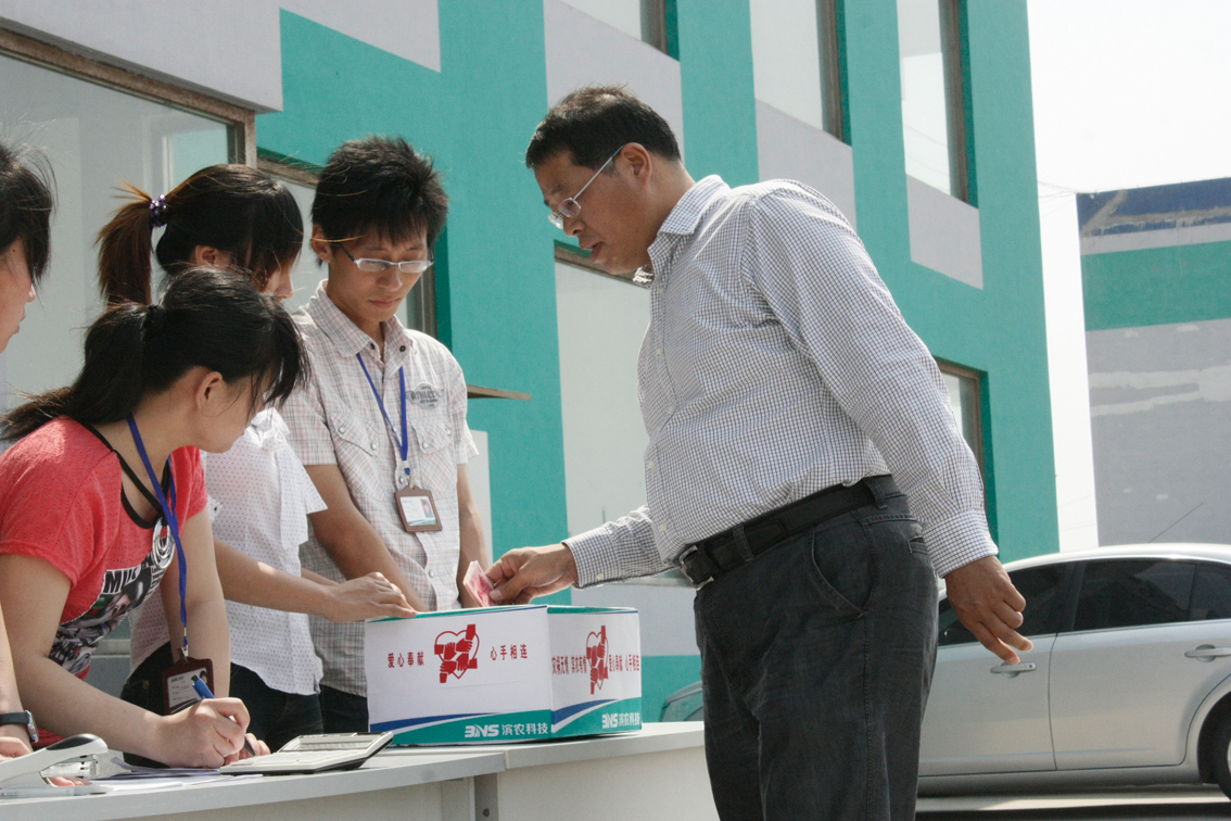 據(jù)了解,張冠誠(chéng)今年47歲,家住濱州堡集,是我公司敬崗愛(ài)業(yè)的老員工。其家庭情況非常困難:父親常年有病,靠藥物維持治療;在2010年的一場(chǎng)車禍中,兒子骨折,兒媳去世,巨大的醫(yī)療開(kāi)支難以為繼;禍不單行,張冠誠(chéng)又確診身患急性白血病,給這個(gè)貧困的家庭雪上加霜。公司獲知這個(gè)情況后,立即行動(dòng)起來(lái),6月4日下午,黨總支、工會(huì)、企業(yè)文化部、人力資源部聯(lián)合組織了“我們?cè)谝黄,?ài)心拯救生命”的集體募捐活動(dòng)。全體中高層干部齊聚辦公樓前參加募捐活動(dòng),公司董事長(zhǎng)黃延昌、工會(huì)主席李華率先捐款,科室員工也紛紛走到捐款箱前,獻(xiàn)出一份愛(ài)心。各分廠車間也陸續(xù)將車間員工捐助的愛(ài)心款匯集到人力資源部;顒(dòng)結(jié)束后,共1150名同事累計(jì)捐款48693元。同時(shí)公司工會(huì)也拿出10000元專項(xiàng)救助款,用于馳援張冠誠(chéng)抗擊病魔。