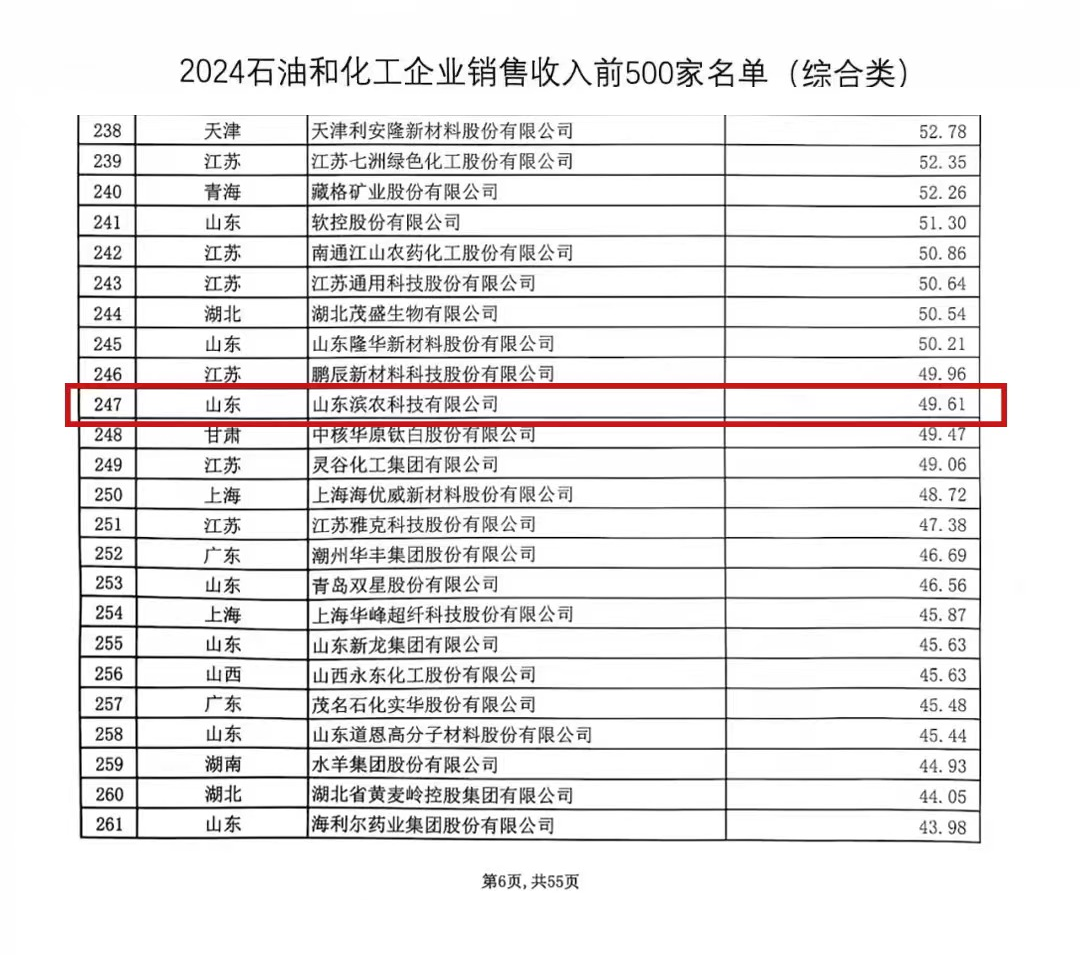 濱農(nóng)科技榮登2024中國(guó)石油和化工企業(yè)500強(qiáng)榜單發(fā)布時(shí)間:2024-10-10 10:139月12日,2024石油和化工企業(yè)銷售收入500強(qiáng)(前500家)發(fā)布會(huì)在山東東營(yíng)舉行。發(fā)布會(huì)以“實(shí)現(xiàn)由大到強(qiáng)的跨越”為主題,揭曉了2024中國(guó)石油和化工企業(yè)500強(qiáng)榜單,濱農(nóng)科技以49.61億收入位列石油和化工企業(yè)500強(qiáng)綜合類企業(yè)第247位。未來(lái),濱農(nóng)科技將繼續(xù)秉承初心,砥礪前行,不斷提升企業(yè)的綜合實(shí)力和市場(chǎng)競(jìng)爭(zhēng)力,為石油和化工行業(yè)的發(fā)展做出更大的貢獻(xiàn)。 ![]() |
